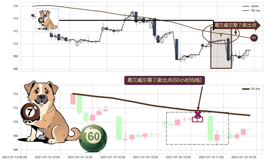 ⚀ 2021-07-16 14:00:00-小时显现 葛兰威尔均线 60小时均线 第⑦卖出点 下降趋势的中继信号,后市看跌,卖出信号
