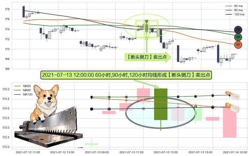 ⚀ 2021-07-13 12:00:00小时显现 60小时-90小时-120小时均线 【断头铡刀】卖出点 看空信号,后市看跌,卖出