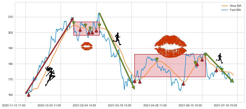 02-09 11:00至03-19 12:00 慢线与快线呈空头排列, 慢线与快线接触少,无缠绕
