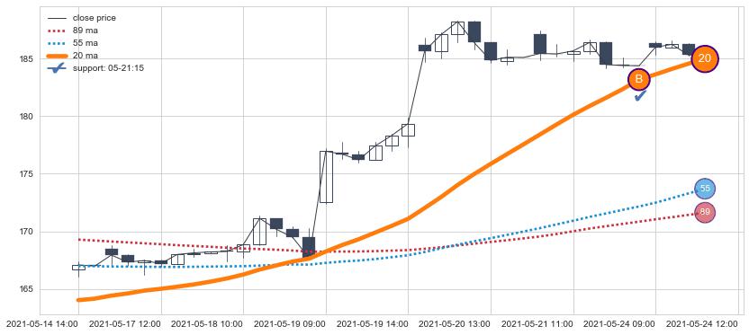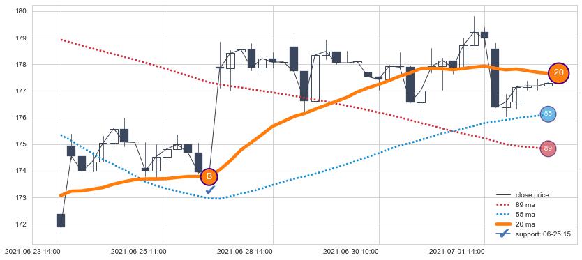 ⚂ 2021-07-19 14:00:00小时突然冒出一根大阳线,一下子顶穿三条均线且收盘价收在各条均线之上