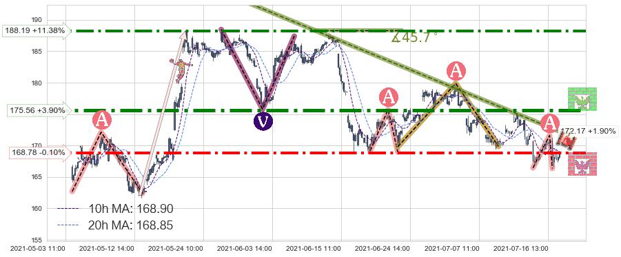 ♘ 支撑价格位168.78,可信任强度84.73%,距离最后交易2021-07-19 15:00形成的收盘价格168.96相差 -0.10%