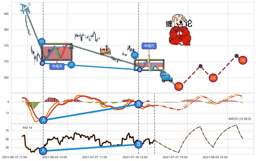 ➣ 【未完成】缠论 起点:06-14:15, 完成第1中枢A,完成第2中枢B,到达07-19:15
