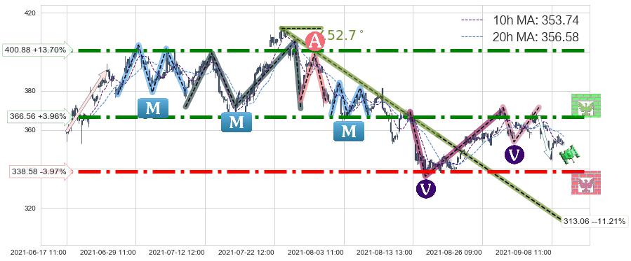 ♘ 阻力价格位366.56,可信任强度90.11%,距离最后交易2021-09-09 14:00形成的收盘价格352.59相差 +3.96%