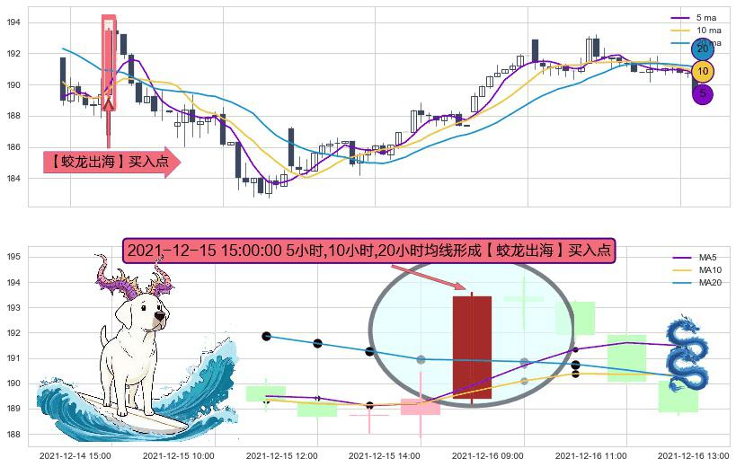 形态多维评估: ⚀ 2021-12-15 15:00:00小时显现 5小时-10小时-20小时均线 【蛟龙出海】买入点 看多信号,后市看涨,买入