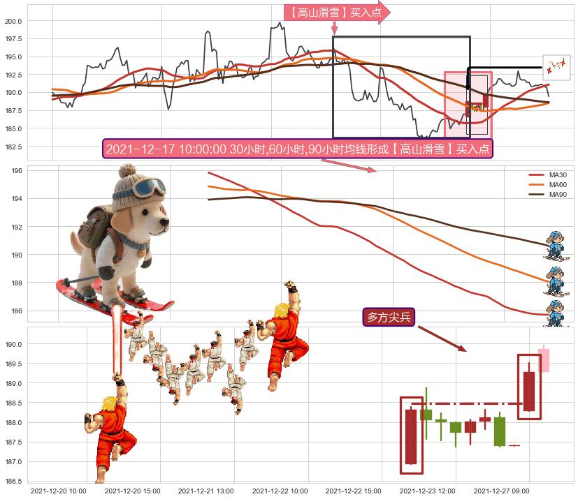 | 3 🅚:两红夹一黑 ➕ 🎢:【高山滑雪】买入点均线组合买入点信号形成后,猜想后续下行结束,持续反弹上涨(均值回复) ☞ 看多信号 ⇥ 【均线】交织【🅚线】⇥ 综合量化分数: 59 | > |