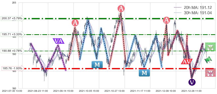 ♘ 阻力价格位195.71,可信任强度61.24%,距离最后交易2021-12-30 15:00形成的收盘价格189.41相差 +3.33%