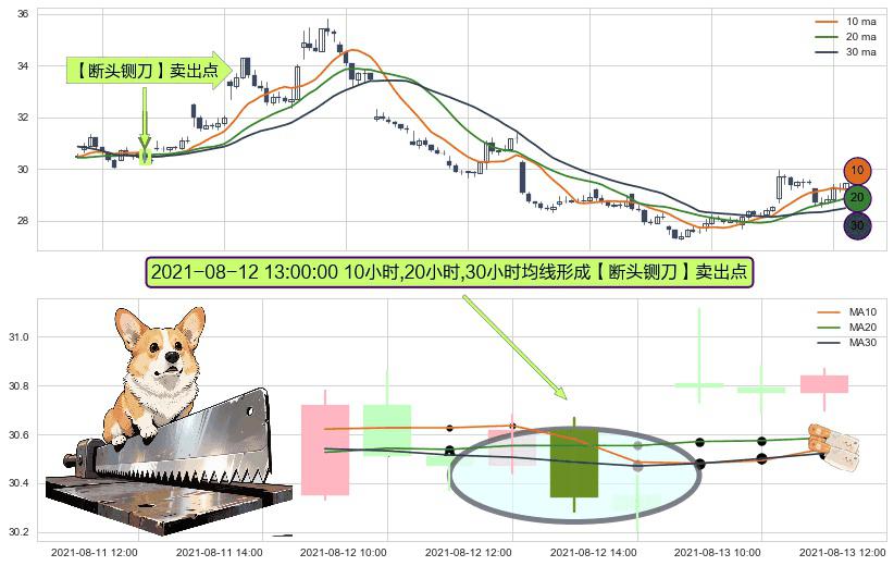 ⚀ 2021-08-12 13:00:00小时显现 10小时-20小时-30小时均线 【断头铡刀】卖出点 看空信号,后市看跌,卖出