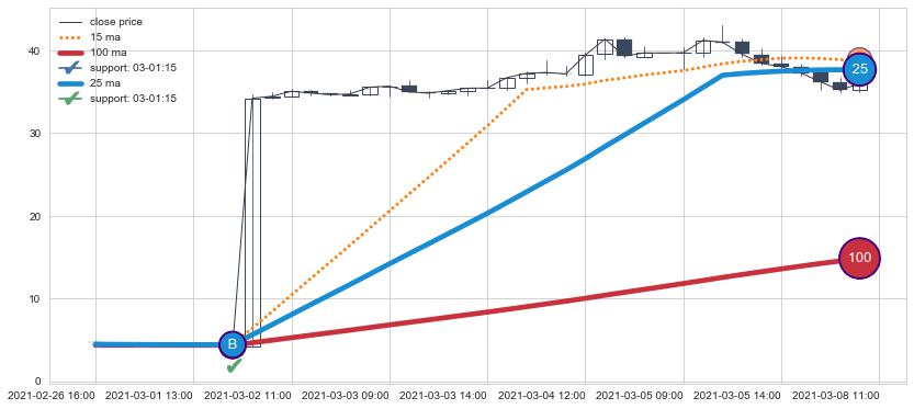 03-01 15:00至03-17 13:00 慢线与快线呈多头排列, 慢线与快线接触少,无缠绕