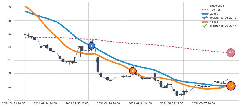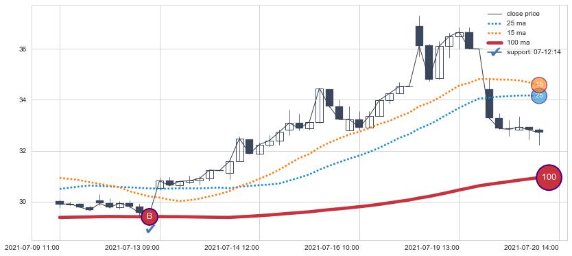 ⚂ 2021-08-12 13:00:00小时突然冒出一根大阴线,一下子下穿三条均线且收盘价收在各条均线之下