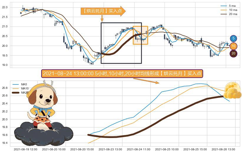 ⚀ 2021-08-20 14:00:00小时-2021-08-26 12:00:00小时显现 5小时-10小时-20小时均线 【烘云托月】买入点 看多信号,后市看涨,买入