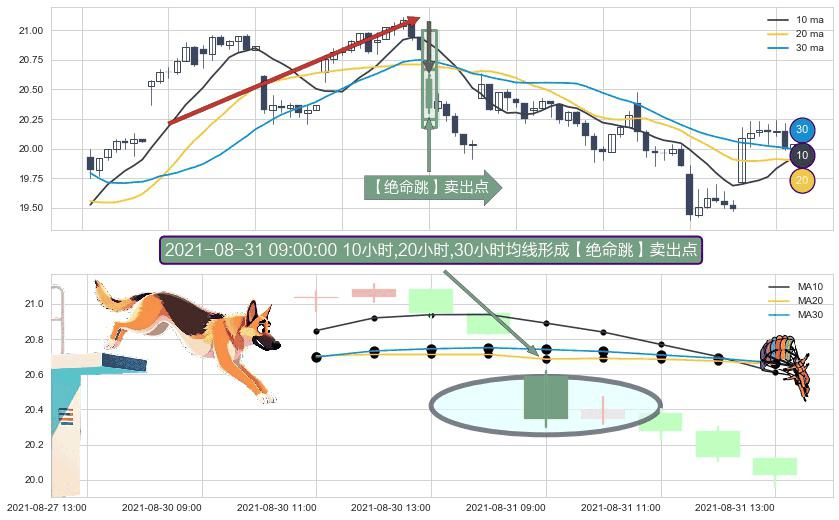 ⚀ 2021-08-31 09:00:00小时显现 10小时-20小时-30小时均线 【绝命跳】卖出点 看空信号,后市看跌,卖出
