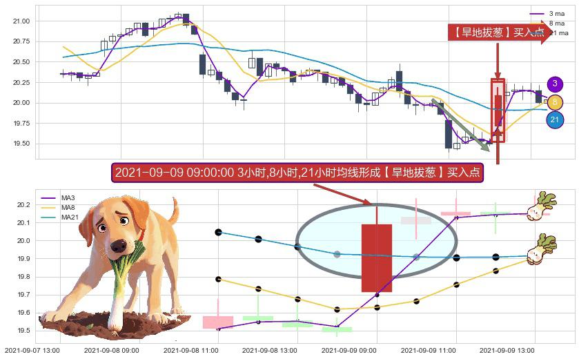 ⚀ 2021-09-09 09:00:00小时显现 3小时-8小时-21小时均线 【旱地拔葱】买入点 看多信号,后市看涨,买入