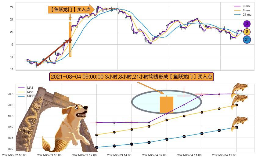 ⚀ 2021-08-04 09:00:00小时显现 3小时-8小时-21小时均线 【鱼跃龙门】买入点 看多信号,后市看涨,买入