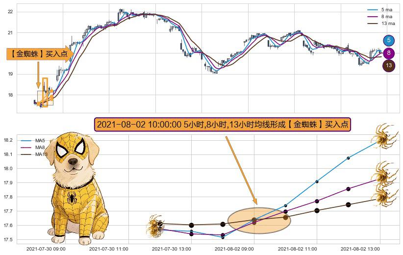 ⚀ 2021-08-02 10:00:00小时显现 5小时-8小时-13小时均线 【金蜘蛛】买入点 看多信号,后市看涨,买入