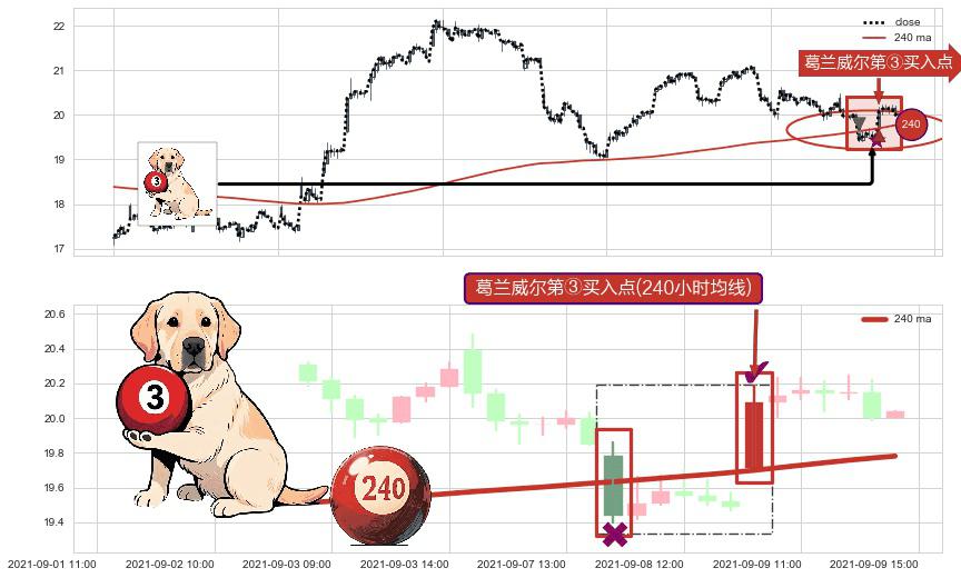 ⚀ 2021-09-09 09:00:00-小时显现 葛兰威尔均线 240小时均线 第③买入点 上升趋势的中继信号,后市看涨,买进信号