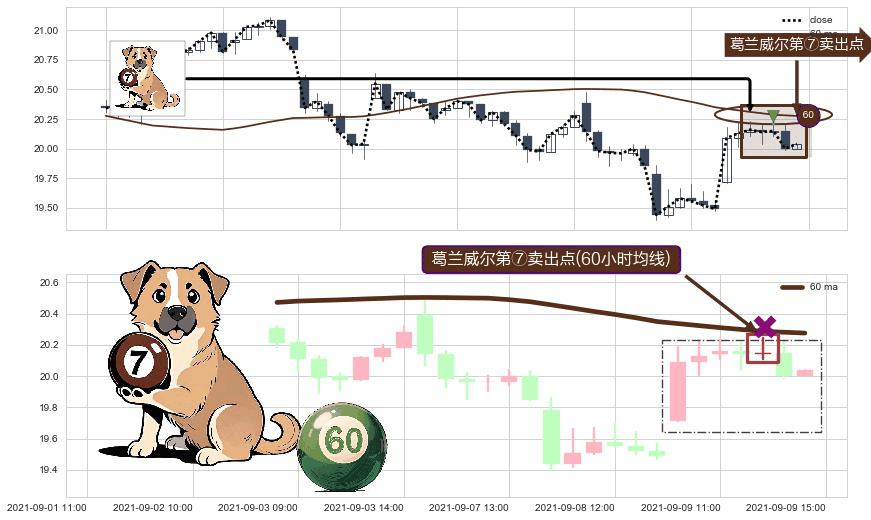 ⚀ 2021-09-09 13:00:00-小时显现 葛兰威尔均线 60小时均线 第⑦卖出点 下降趋势的中继信号,后市看跌,卖出信号