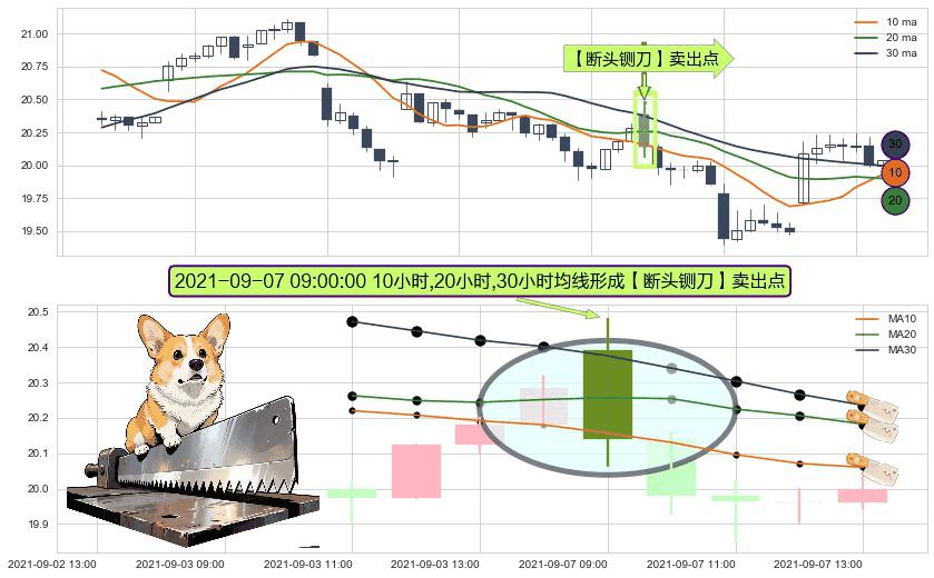 ⚀ 2021-09-07 09:00:00小时显现 10小时-20小时-30小时均线 【断头铡刀】卖出点 看空信号,后市看跌,卖出