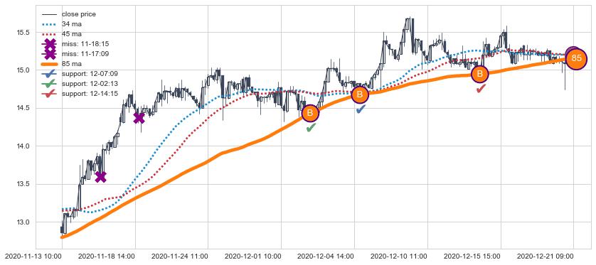 ⚄ 均线向下破位后价格下探力度低,负乖离率低,再次向上突破后维持原均线上涨趋势【强】