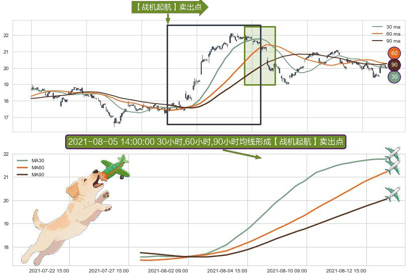 ⚀ 2021-07-28 12:00:00小时-2021-08-13 15:00:00小时显现 30小时-60小时-90小时均线 【战机起航】卖出点 看空信号,后市看跌,卖出