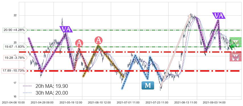 ♞ 20小时均线:19.90,30小时均线:20.00→ 快线<慢线