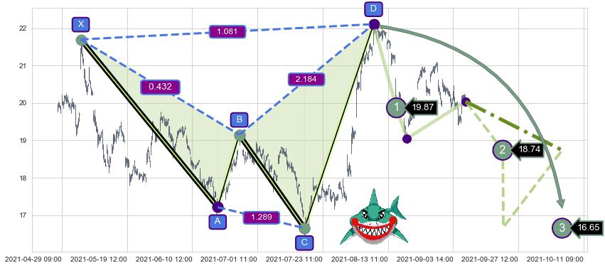 | 4 🅚:下跌两颗星 | 下跌三颗星 ➕ 📡:谐波鲨鱼已到达d点:猜想c拉升到达d点后泄力性下沉下跌(均值回复) ☞ 看空信号 ⇥ 【🅚线】交织【图形】⇥ 综合量化分数: 42 | > |