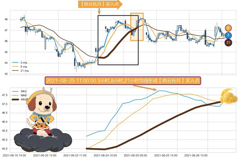 形态多维评估: ⚀ 2021-08-23 11:00:00小时-2021-08-27 09:00:00小时显现 3小时-8小时-21小时均线 【烘云托月】买入点 看多信号,后市看涨,买入