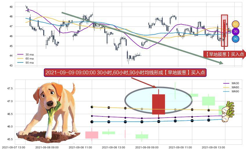 形态多维评估: ⚀ 2021-09-09 09:00:00小时显现 30小时-60小时-90小时均线 【旱地拔葱】买入点 看多信号,后市看涨,买入