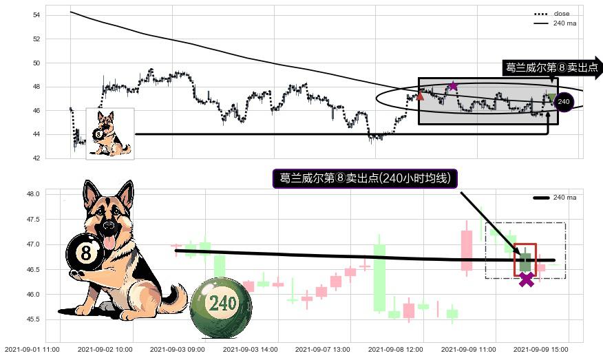 形态多维评估: ⚀ 2021-09-09 13:00:00-小时显现 葛兰威尔均线 240小时均线 第⑧卖出点 下降趋势的中继信号,后市看跌,卖出信号