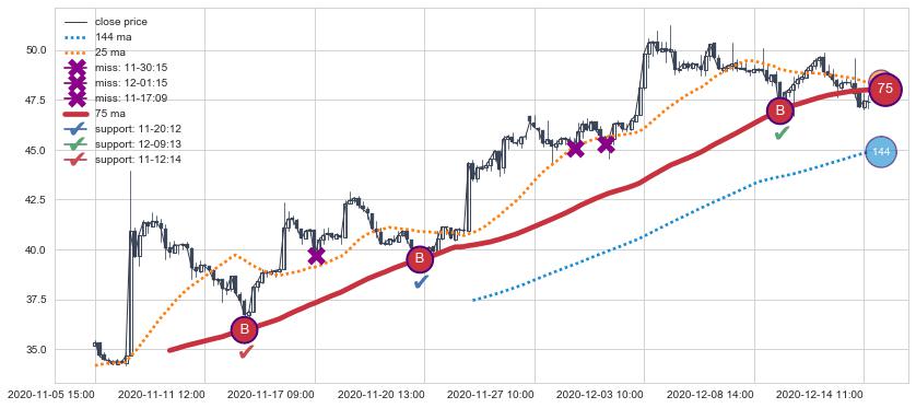 上涨趋势11-05 15:00-12-14 12:00,均线75确认关键支撑3处