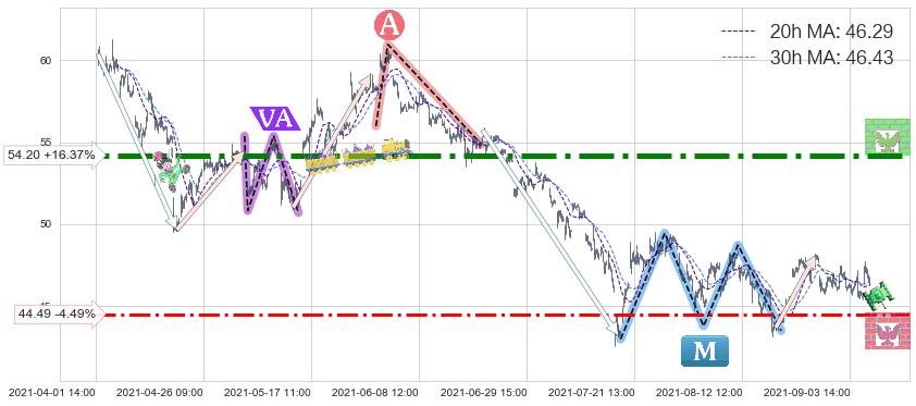 ♘ 支撑价格位44.49,可信任强度63.25%,距离最后交易2021-09-09 15:00形成的收盘价格46.58相差 -4.49%