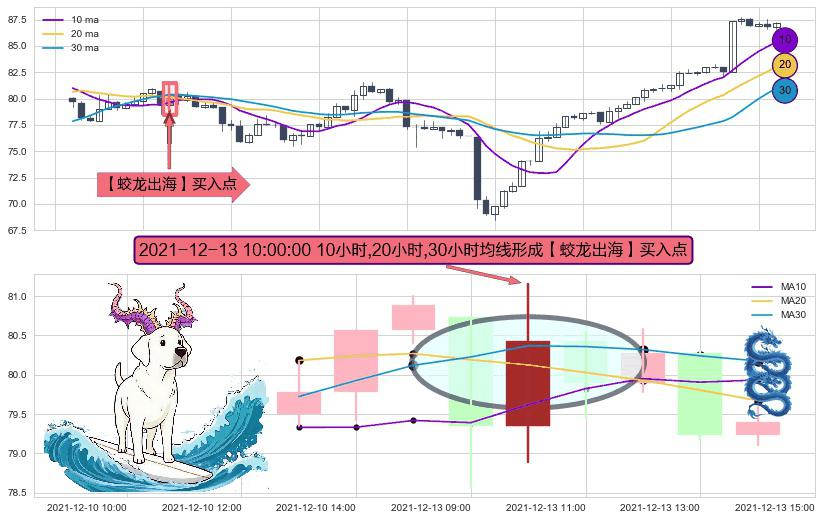 形态多维评估: ⚀ 2021-12-13 10:00:00小时显现 10小时-20小时-30小时均线 【蛟龙出海】买入点 看多信号,后市看涨,买入