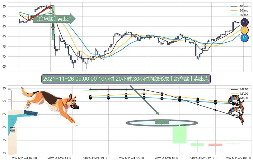 形态多维评估: ⚀ 2021-11-26 09:00:00小时显现 10小时-20小时-30小时均线 【绝命跳】卖出点 看空信号,后市看跌,卖出