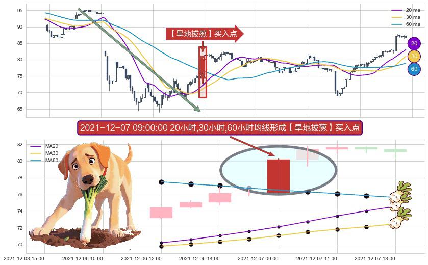 形态多维评估: ⚀ 2021-12-07 09:00:00小时显现 20小时-30小时-60小时均线 【旱地拔葱】买入点 看多信号,后市看涨,买入