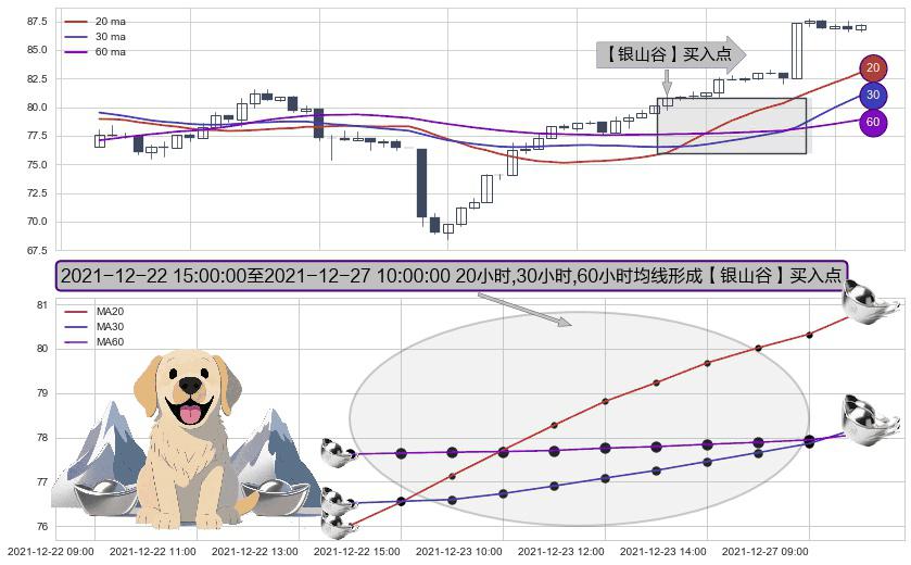 形态多维评估: ⚀ 2021-12-23 09:00:00-小时至2021-12-27 10:00:00-小时显现 20小时-30小时-60小时均线 【银山谷】买入点 看多信号,后市看涨,买入