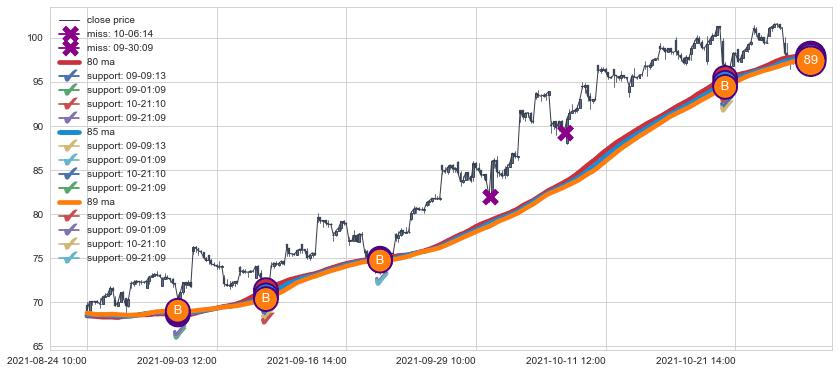 上涨趋势08-24 10:00-10-27 13:00,均线80, 89, 85确认关键支撑4处