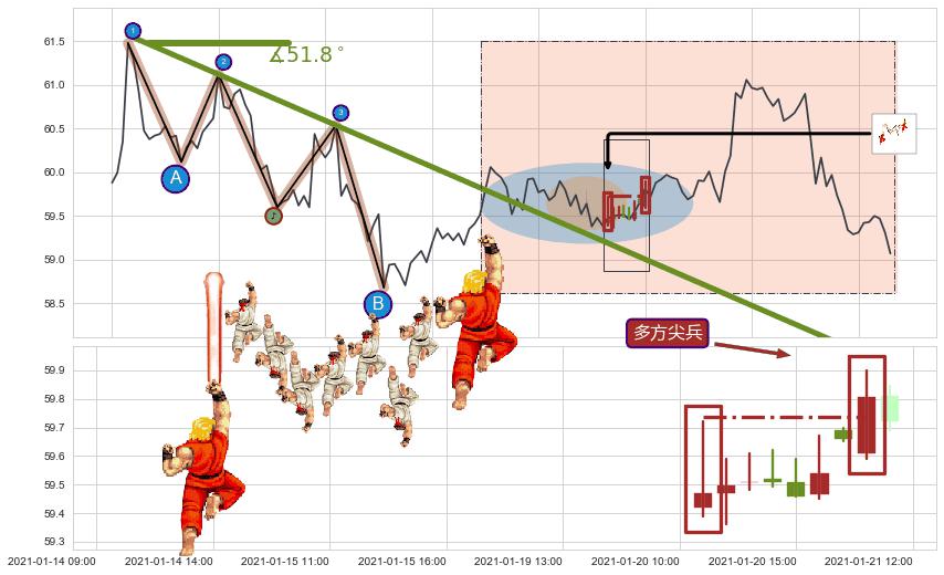 ➢ 最后的下跌趋势2021-01-04 09:00至2021-01-21 13:00:存在突破迹象,后续小反弹或者反转上涨