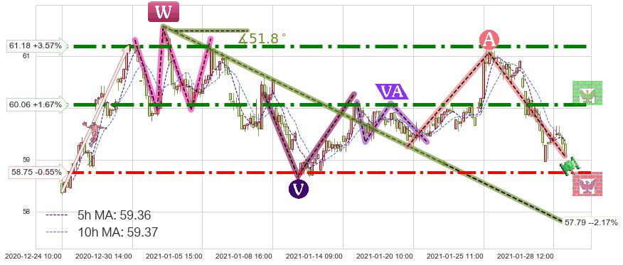 ♘ 阻力价格位60.06,可信任强度88.77%,距离最后交易2021-01-28 16:00形成的收盘价格59.07相差 +1.67%