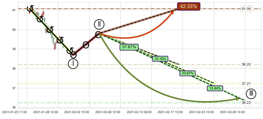 ➢ 循环浪继续向下【最高】位置(02-17:10, 58.20),匹配聚类样本比例17.61%, 可能性概率10.16%
