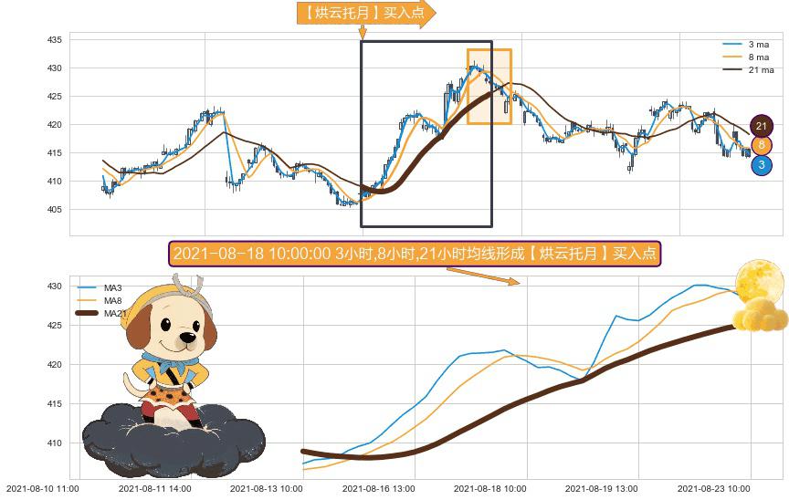 ⚀ 2021-08-13 10:00:00小时-2021-08-23 10:00:00小时显现 3小时-8小时-21小时均线 【烘云托月】买入点 看多信号,后市看涨,买入