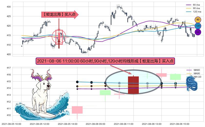 ⚀ 2021-08-06 11:00:00小时显现 60小时-90小时-120小时均线 【蛟龙出海】买入点 看多信号,后市看涨,买入