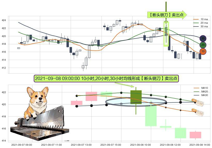 ⚀ 2021-09-08 09:00:00小时显现 10小时-20小时-30小时均线 【断头铡刀】卖出点 看空信号,后市看跌,卖出