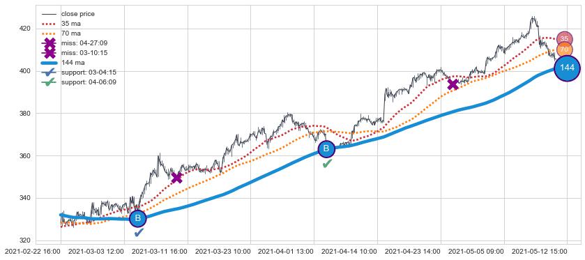⚁ MA3和MA8走势平行,且始终保持在短距离内,MA21始终在短中期均线下方,与短中期均线保持一定的距离,微微上行
