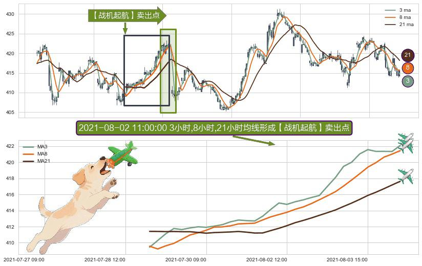 ⚀ 2021-07-28 15:00:00小时-2021-08-04 12:00:00小时显现 3小时-8小时-21小时均线 【战机起航】卖出点 看空信号,后市看跌,卖出