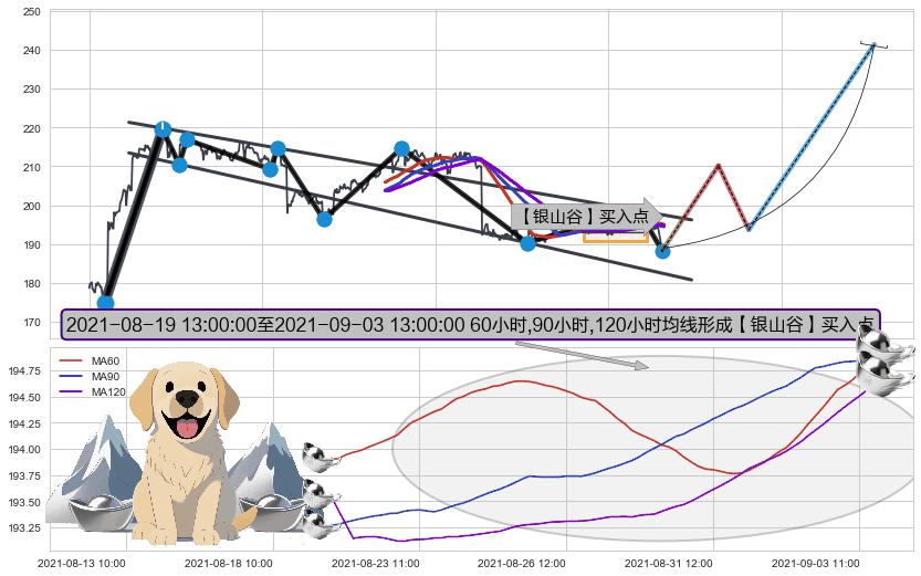 | 7 🅚:下探上涨 ➕ 🎢:【金银山谷】买入点均线组合买入点信号形成后,猜想后续突破上升,沿着向上的尖头三角上涨 ☞ 看多信号 ⇥ 【均线】交织【🅚线】⇥ 综合量化分数: 53 | > |