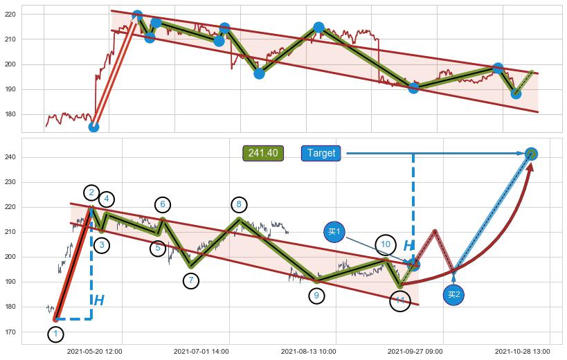 ➣ AI预测: 假定反转启动后, 第❸目标位置(03-28:15, 219.53)
