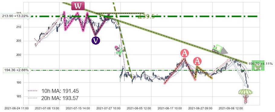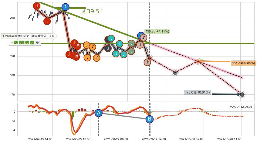 ➣ 预测:2021-10-06 10:00,【试探阻力】稳定目前下跌趋势的前提下,预测价格:187.34