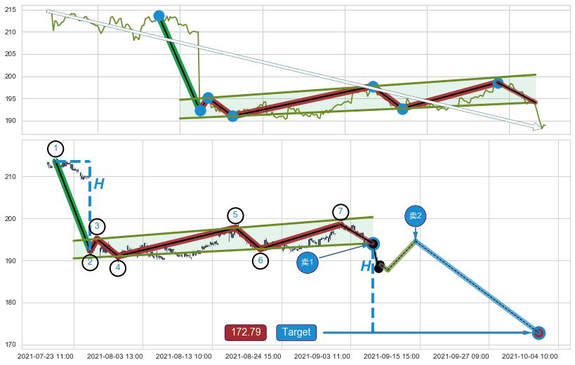 ➣ 最小中继整理跌幅→𝐇: 21.30 (𝐇旗杆的长度:旗杆起点→顶点)