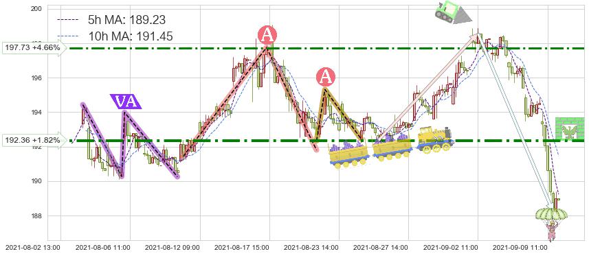 ➣ 【已达成】最小【整理】第一目标价格→(09-09:10: 192.67 ), 后续继续【整理】下跌动力微弱,下跌较小