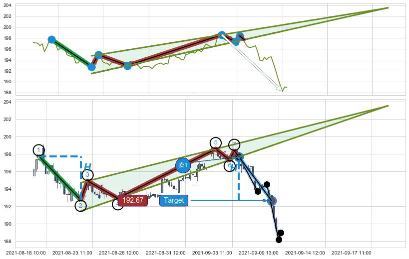 ➣ 09-08:09到达第❷价格目标位置193.89