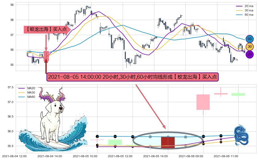形态多维评估: ⚀ 2021-08-05 14:00:00小时显现 20小时-30小时-60小时均线 【蛟龙出海】买入点 看多信号,后市看涨,买入